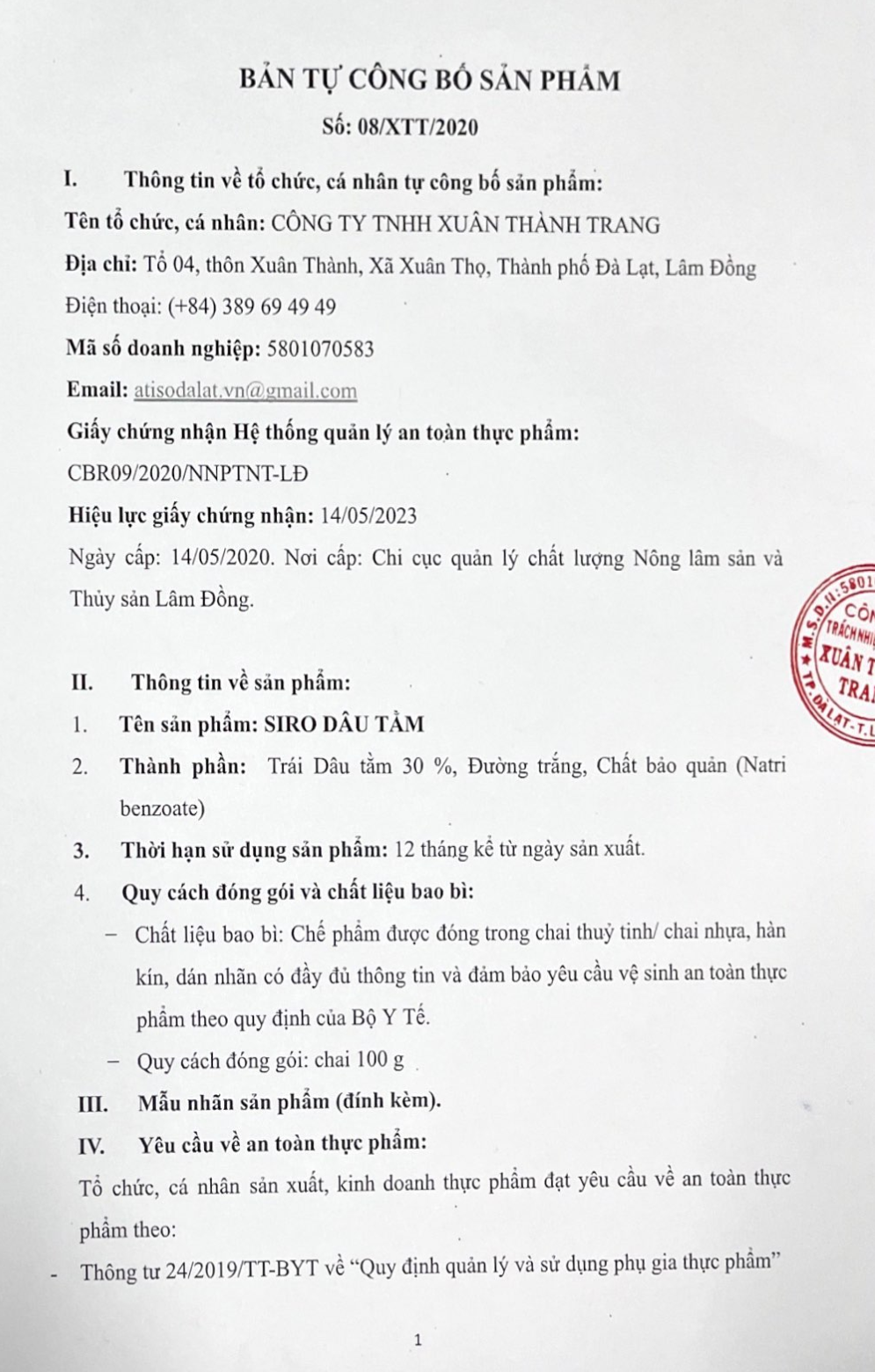 BẢN TỰ CÔNG BỐ - SIRO DÂU TẰM