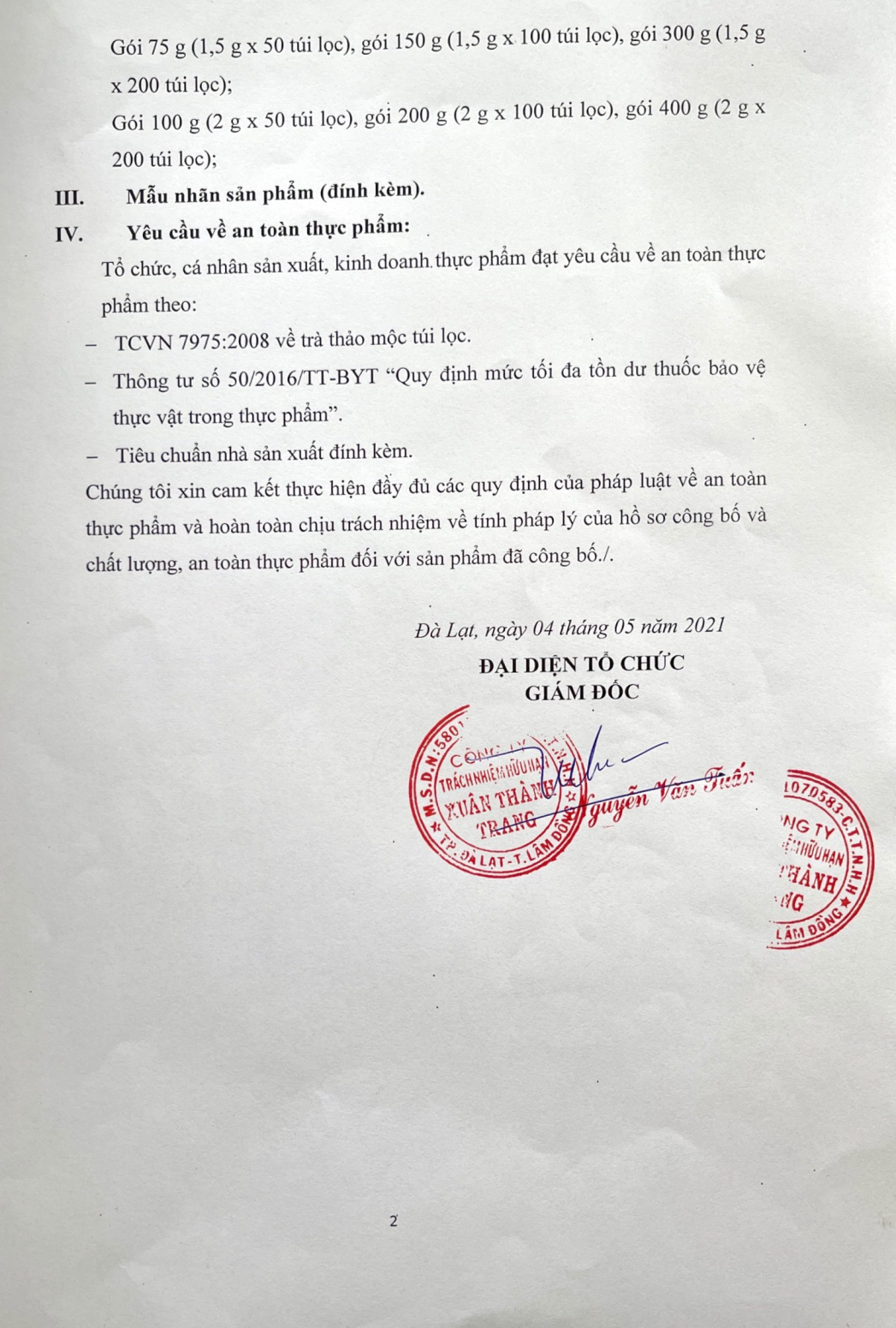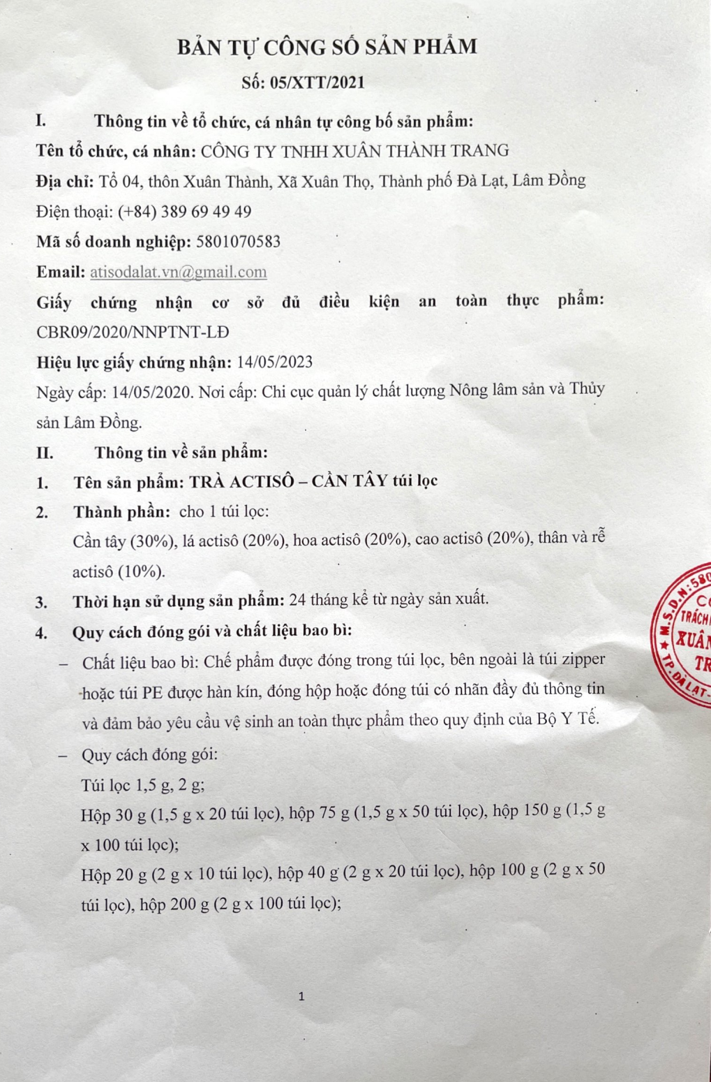 BẢN TỰ CÔNG BỐ - TRÀ ACTISÔ - CẦN TÂY TÚI LỌC